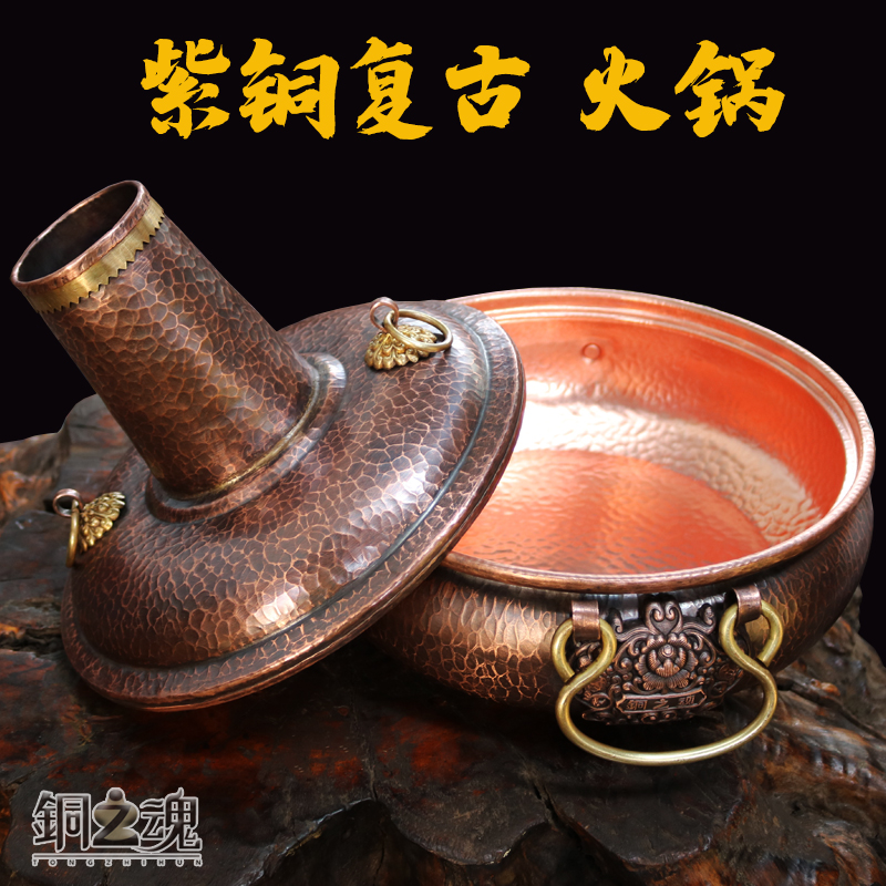 加厚铜火锅 100%纯紫铜 木炭手工铜火锅 纯手工 火锅炉 红铜火锅