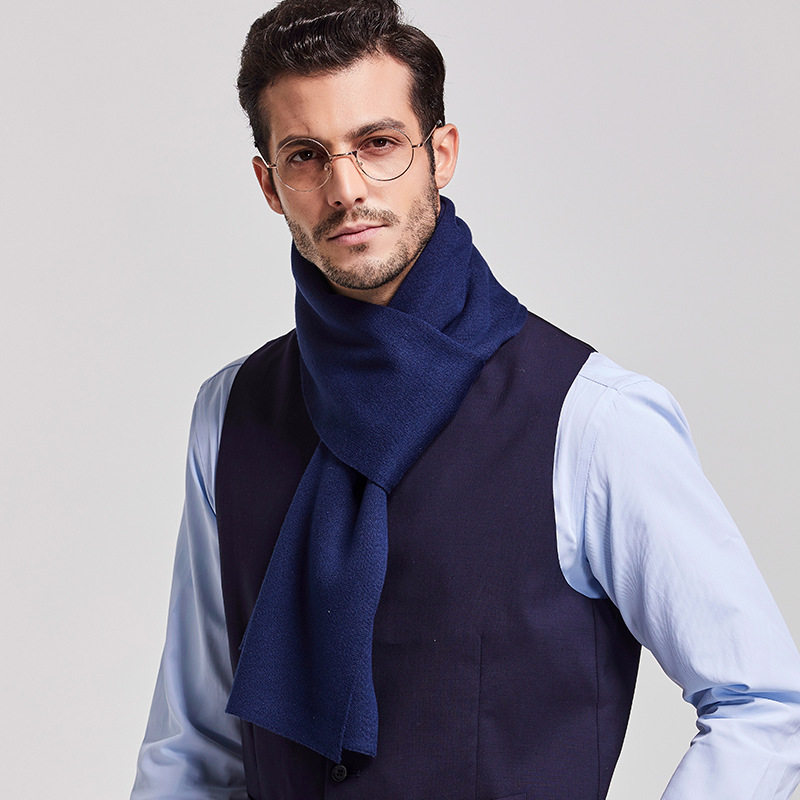 韩版秋冬季保暖羊绒围脖商务纯色男士羊毛围巾披肩长款深蓝色包邮热门设计联盟服务商