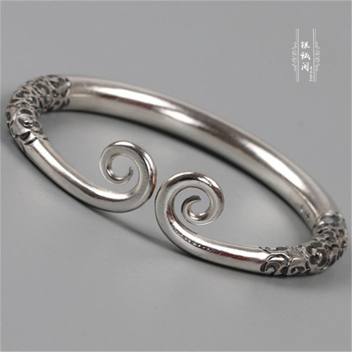 纯银999紧箍咒手镯男孙悟空金箍棒手工刻字开口原创设计简约镯子热门设计联盟服务商