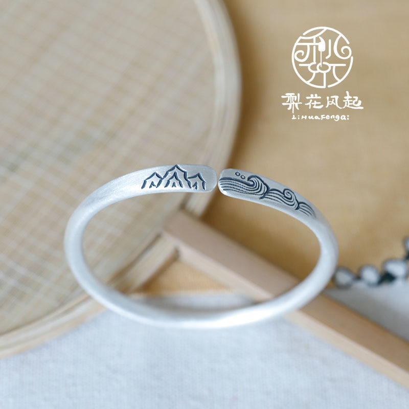 手工匠制999纯银手镯足银镯子个性情侣银饰复古开口礼物原创设计热门设计联盟服务商