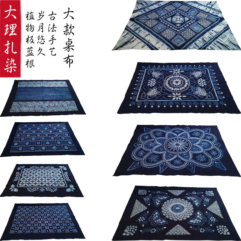 云南扎染桌布大理白族手工蓝染床单台布民族风装饰大款长方餐桌布热门设计联盟服务商
